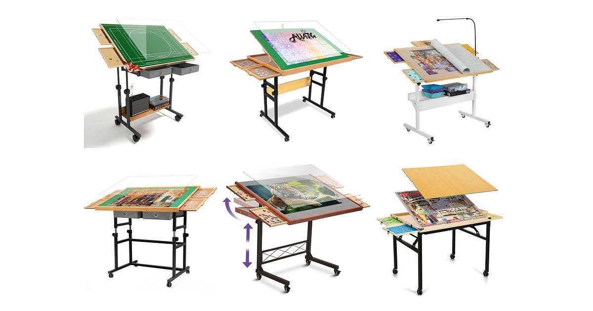 You want a table that supports real puzzling, not something that creates more hassle. We prioritized: size and capacity (can it handle 1,000–2,000 pieces), storage (drawers and shelves to sort pieces), tilt and height adjustment (to reduce neck and back strain), build quality and stability (so you can lean without wobble), mobility (lockable wheels for repositioning), extras (covers, lights, cup holders), and price versus features so you get clear value. We also weighed verified user feedback about assembly, durability, and pet- or kid-proofing so the tables we recommend are practical for active holiday homes.